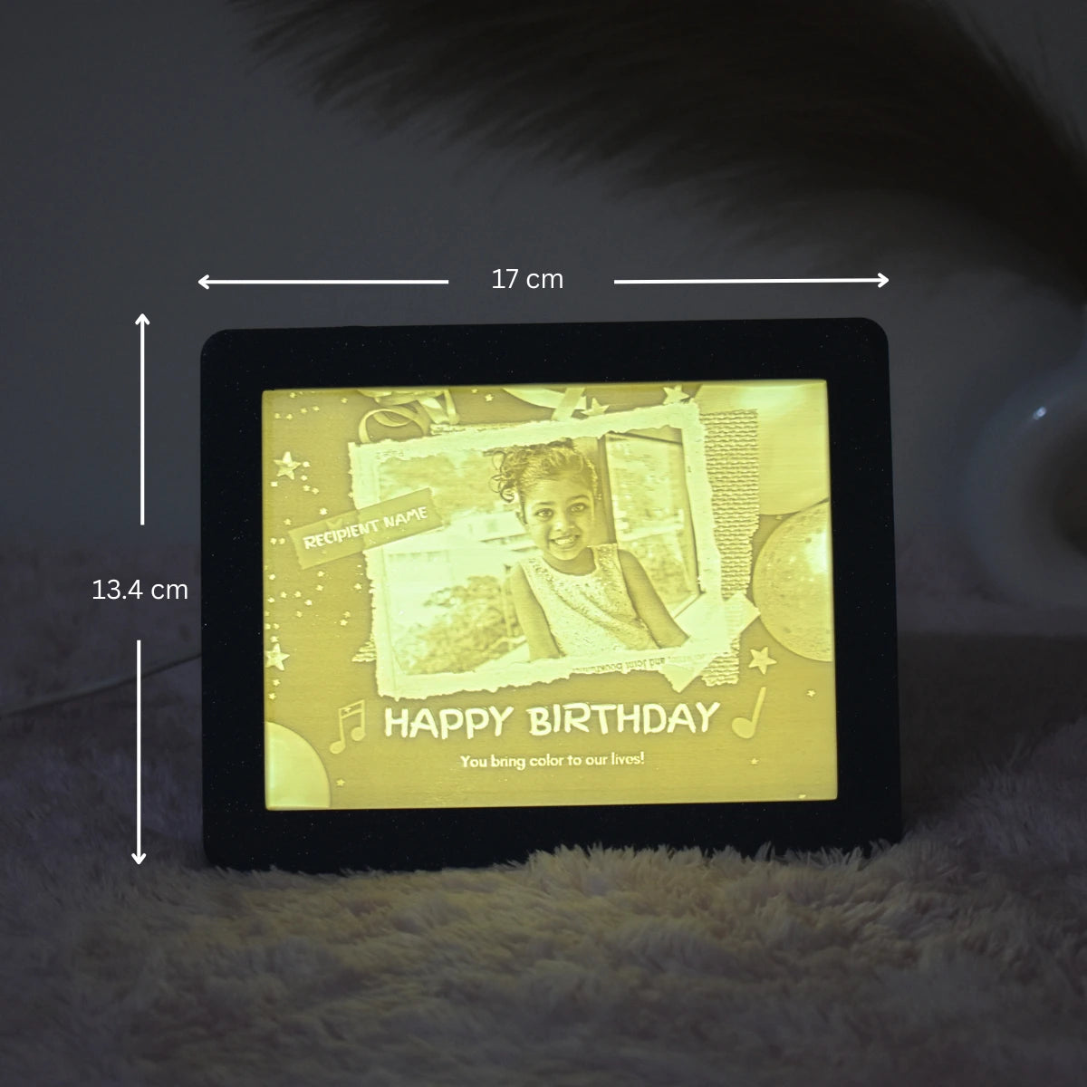 When the light is switched on, the photo appears bright and lively, creating excitement and happiness for the child. The cute, kid-friendly design makes it perfect for bedrooms, study tables, or as a night light, adding a warm and comforting glow they’ll love.